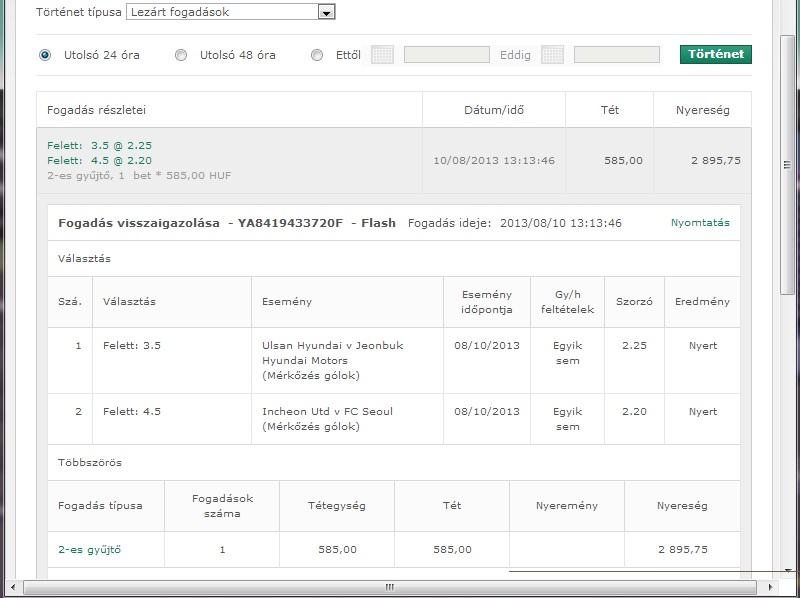 3-as gyűjtő, 4 bets * 300,00 HUFHátha így érthetőbb.