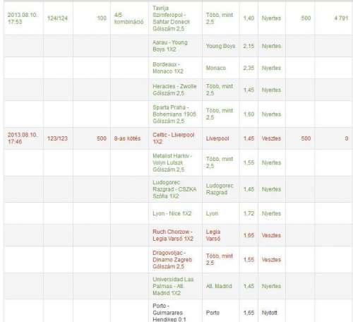 Monaco győzelem ment, illetve a Ruch-Legia X,Kíváncsi leszek.