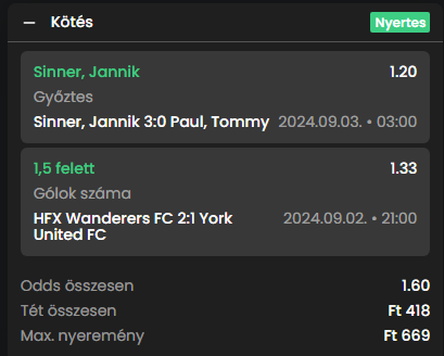 A Frem nyert 4:1-re! Mennyi lehetett hendivel, ha 8,5x simán, pár másik dán kupameccsen is lehetett fogni szép szorzókat kétesélyben. Doncaster gólos 1,6x is jó, bár én melléraktam holnapi Swiatek teniszt is. Bízok benne.