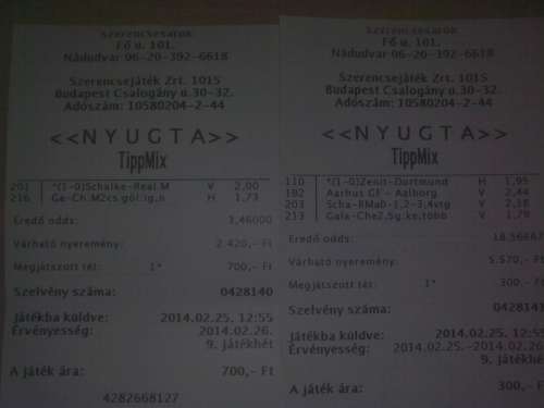 nagyba nyúlok a mixemhez, mondom jött a Parma-Fiorentina döntetlen, megy fel a nyeremény a holnapi BL-re, erre nézem, ELÍRTAM!! 033 helyett valamiért 042 D-t írtam..