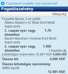 Atletico + Bayern kerek 2-es odds! Not bad!
