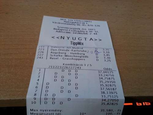 Pályafutásom 2. nyerő papíros szelvénye. Az utolsó nyerő szelvényemet 14 évvel ezelőtt tettem!