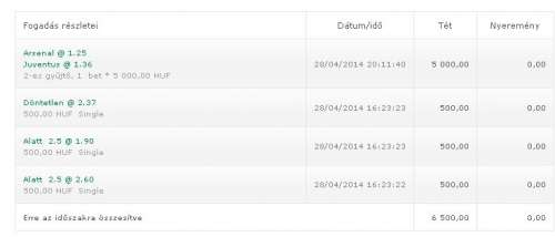 Végül 5000-et raktam, Arsenal, Juve győzelemre.