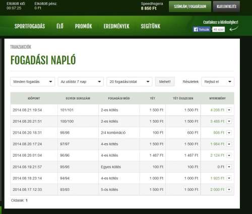 ha a francos split lő egyet, 1 nyerő 5-ös kötés: 2.100->49.970...