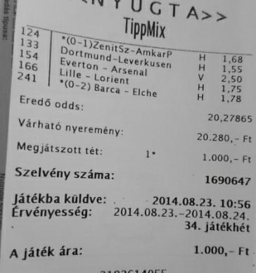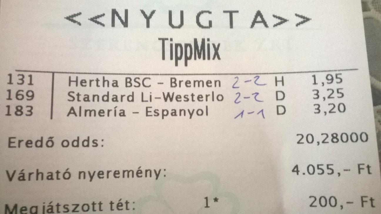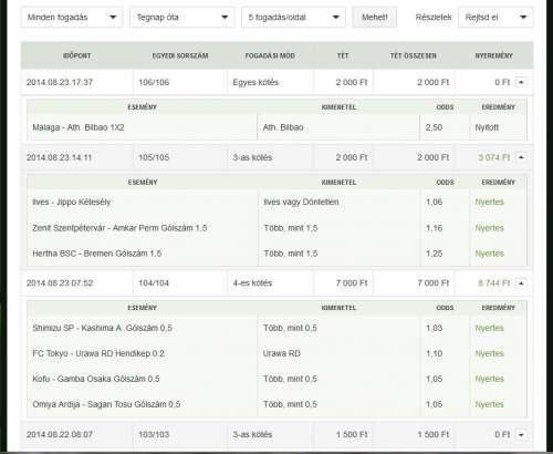 frankó 4/5, ahol 1 hibával, papírformák, itt 100-1000 ft-os kötésalaptét.és téttől függetlenül nagytétesnek hívom azt, ahol szigorú szabályok szerint 2-3 kötés, eredő kb. 2.2-4-5.