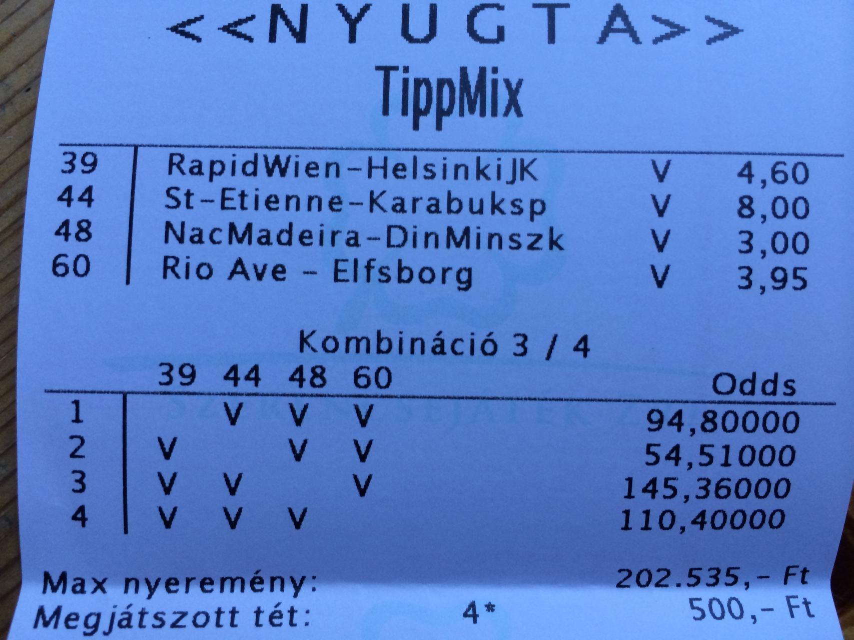 nem drukkolásból, hanem realitásból.a bate-nél egyértelműen azokra tettem, akkor hozott is kis zsét, mert megtették a kötelességüket.