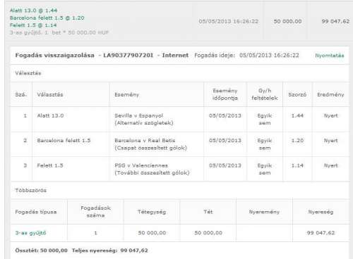 Illetve van még pár ilyen 10-50K közötti tét is ami 1 meccseken ment el, de ezeket még a bet365-ön tettem 2013 márciusa előtt, és azt már nem lehet megnézni. Itt a topicban még megvannak szerintem, korábban linkeltem őket.Kocsi megy, meg van írva a chip visszább találsz róla videót.