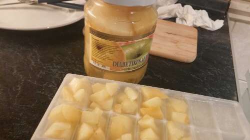 sütési idő 25 perc. (600w-on, mert 1000-1500-on biztos kevesebb...)az egyik képen diabetikus almabefőtt van.