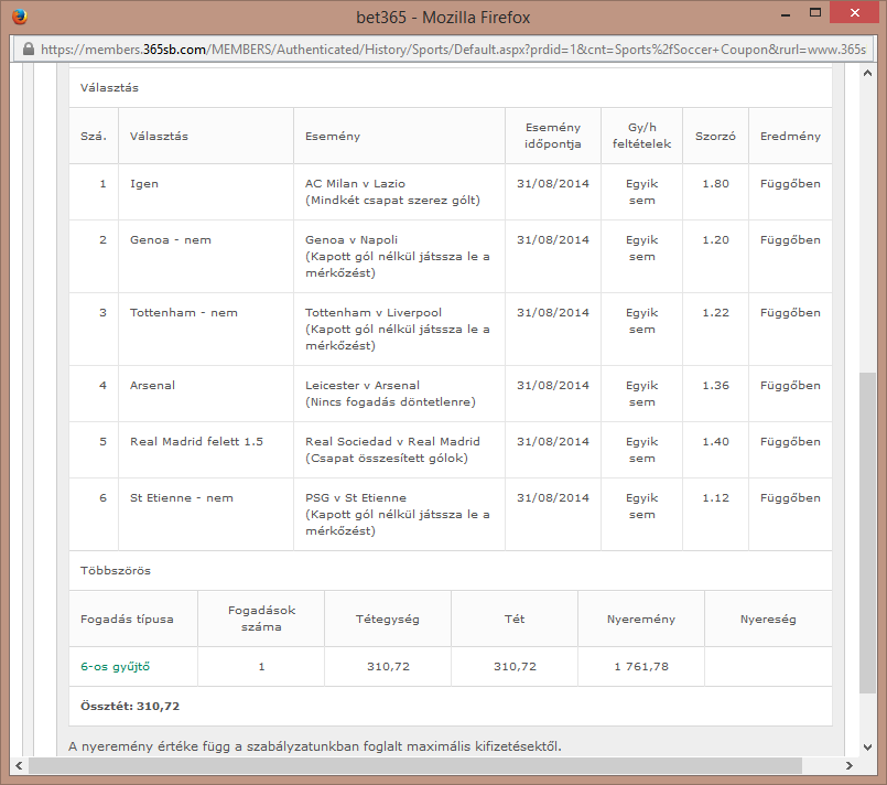 Pohang Steelers 2-0 @ 12.00 (vendég 0:2)77-es szorzó, ugyanez vendég Pohang győzelemmel is.