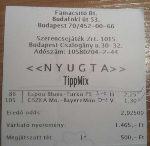 Volt 33 ezrem a prón, tegnap bukó 3 ezer, ma is kéne még Bilbao X legalább, újabb 3 ezer mínusz így, de gyorsan kiutaltattam 25 ezret, nehogy elolvadjon. Maradt 2 ezer holnapra bohóckodni.