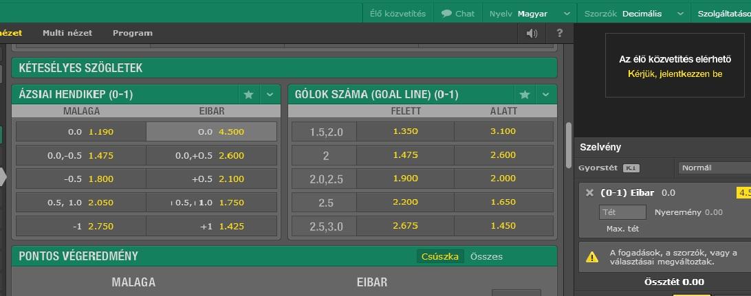 Szeretnek fogadni a Malaga - Eibar meccsre AH-ba nem tudom , hogy most mar melyik mit jelent!