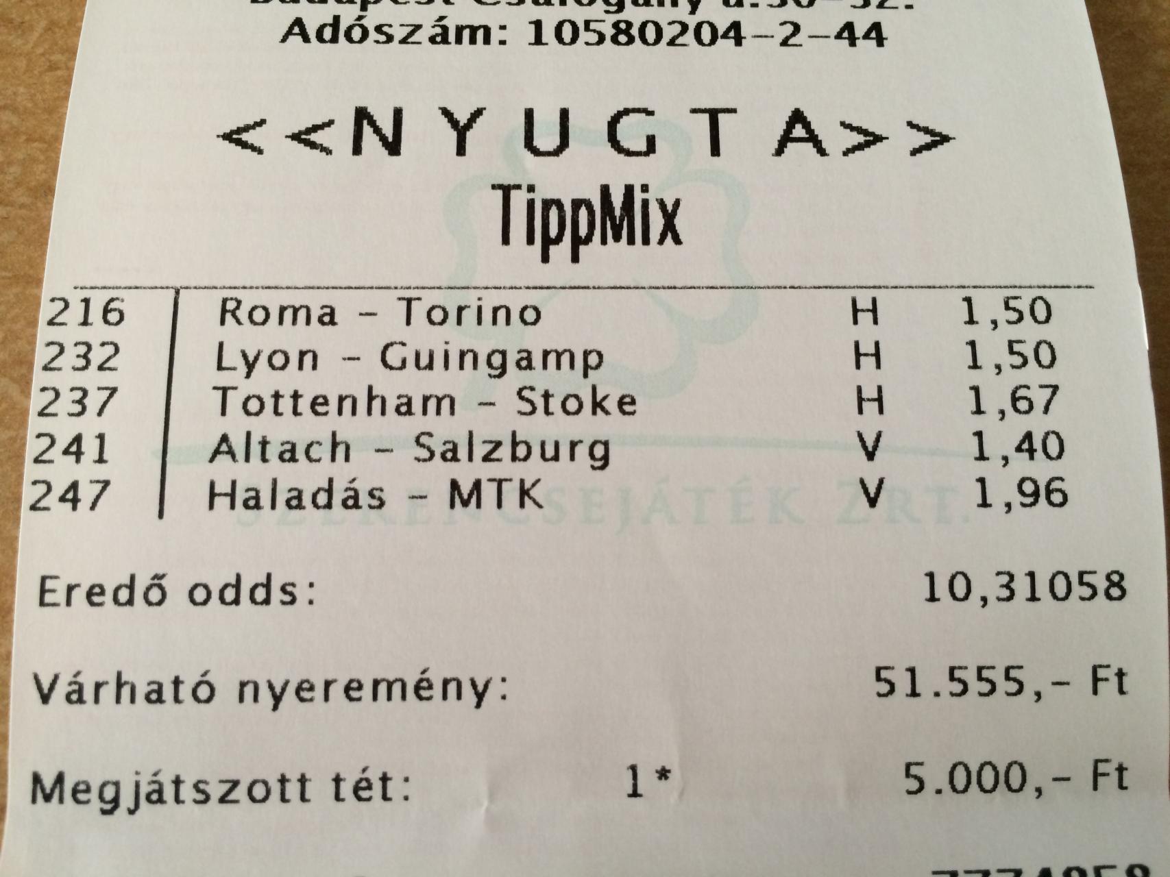 előbb tettem juve hendit, tottenham-et, mtk-t...