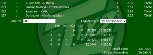 meg a két korai török1 2/x 19 és 15 oddsért...