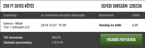 akkor kérnék egy 2. gólt a Napoli meccs félidejében, és 2-t a Napolitól