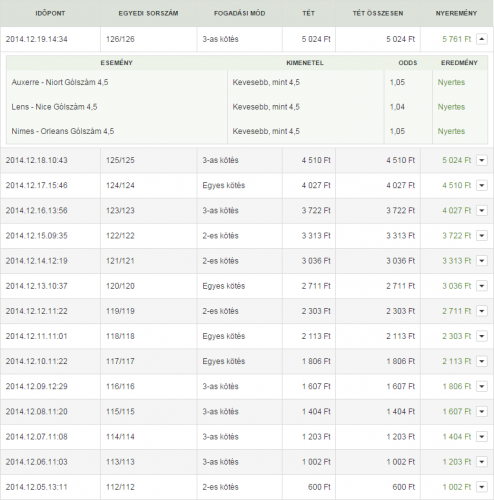 (Játékidő eredménye) 20/12/2014 Egyik sem 1.662000 -> 7865