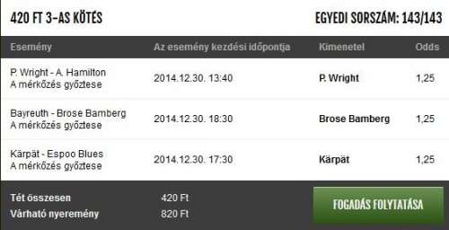 Nem találtam értelmes meccseket, úgyhogy ma csak egy ilyen esélytelenkével indulok.
