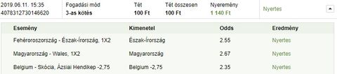 Belgiumot húztam, simán esélyesebbnek láttam játéka alapján, erre...Mint az, hogy mellé teszem a Drogheda meccset, hogy 2,5 over, mert eddig szinte minden meccsük az volt és 2:0, ilyenkor bef*sok