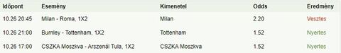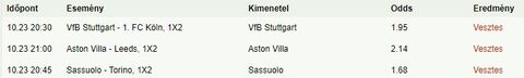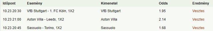 Múltkor én is befürödtem velük, azóta inkább kerülöm. A mai nap ismét tippmixgyilkos nap volt, még az 1,25-1,30-as oddsok is szépen elmentek.