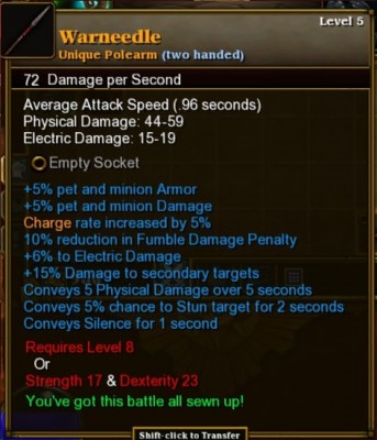 Találtam én is olyan fegyvert, aminél az áll, hogy öljek meg tíz Champion lényt és fejlődik. Végigirtottam már vagy 3 dungeont, főbossokkal, mindennel együtt, de még mindig 0/10. Direkt figyeltem is rá, hogy ne Flame Hammerrel irtsam ki őket, és mégis.