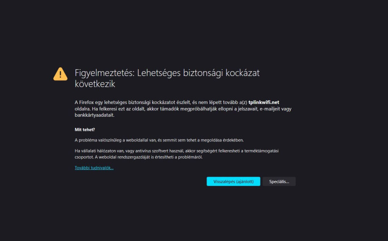 Van egy TP Link ax23-as routerem, és amikor rámegyek a router beállításaira (ip cím), akkor mindig az alábbi kép fogad. Ez mitől lehet és hogyan lehet eltüntetni hogy ne jelenjen meg? -