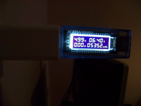 Kikapcsolt állapotban 7V 2A-al töltött, most így is 5V-al tölt. Nem tudom, hogy ennek a mérő kütyünek mennyire lehet hinni, de mah-ba most pumpált a legtöbbet