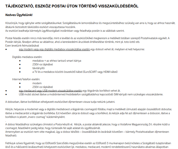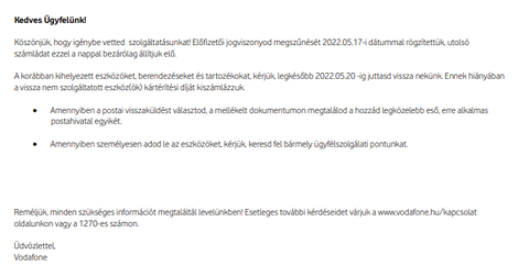 Most azt mondták 24 órán belül lesz kikapcsolva. Kötbérmentesen. Aztán postai úton kapok egy végszámlát. Postai úton kell leadnom a CB-t és a MediaCardot is.
