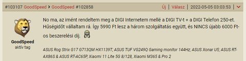 Mondtam, hogy igen, ja... 1 évig annyit fizettem még meg nem jelent a DIGI Hajdúszoboszlón az utcában