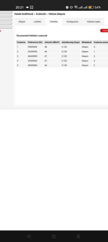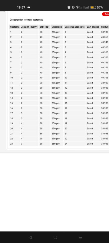 Ha megírod, hogy milyenek a modem jelszint értékek meg tudjuk írni, hogy rendben vannak-e az értékek. -