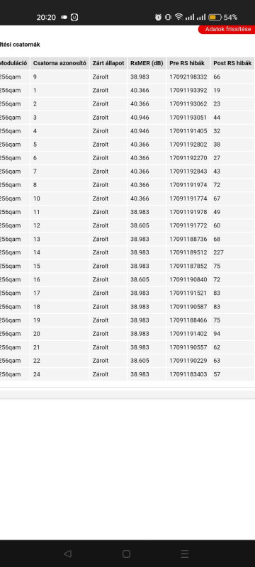 A hiba jelenség a következő. 1-5 mp elmegy az internet majd nagyon hamar visszajön. Mind a modem webes felülete, mind azon belül fórum leírásban említett down és up jelszintek megfelelő tartományban vannak. A hiba hónapok óta fennáll ,de egyre gyakrabban fordul elő.