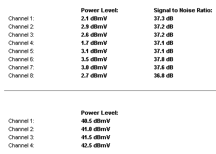 Channel 8: 10.3 dBmV 40.8 dBUpstream Channels