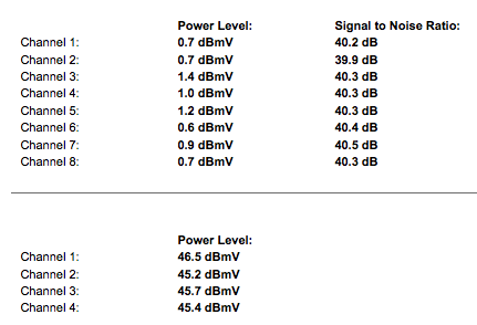 Channel 8: 3.5 dBmV 37.2 dBUpstream Channels