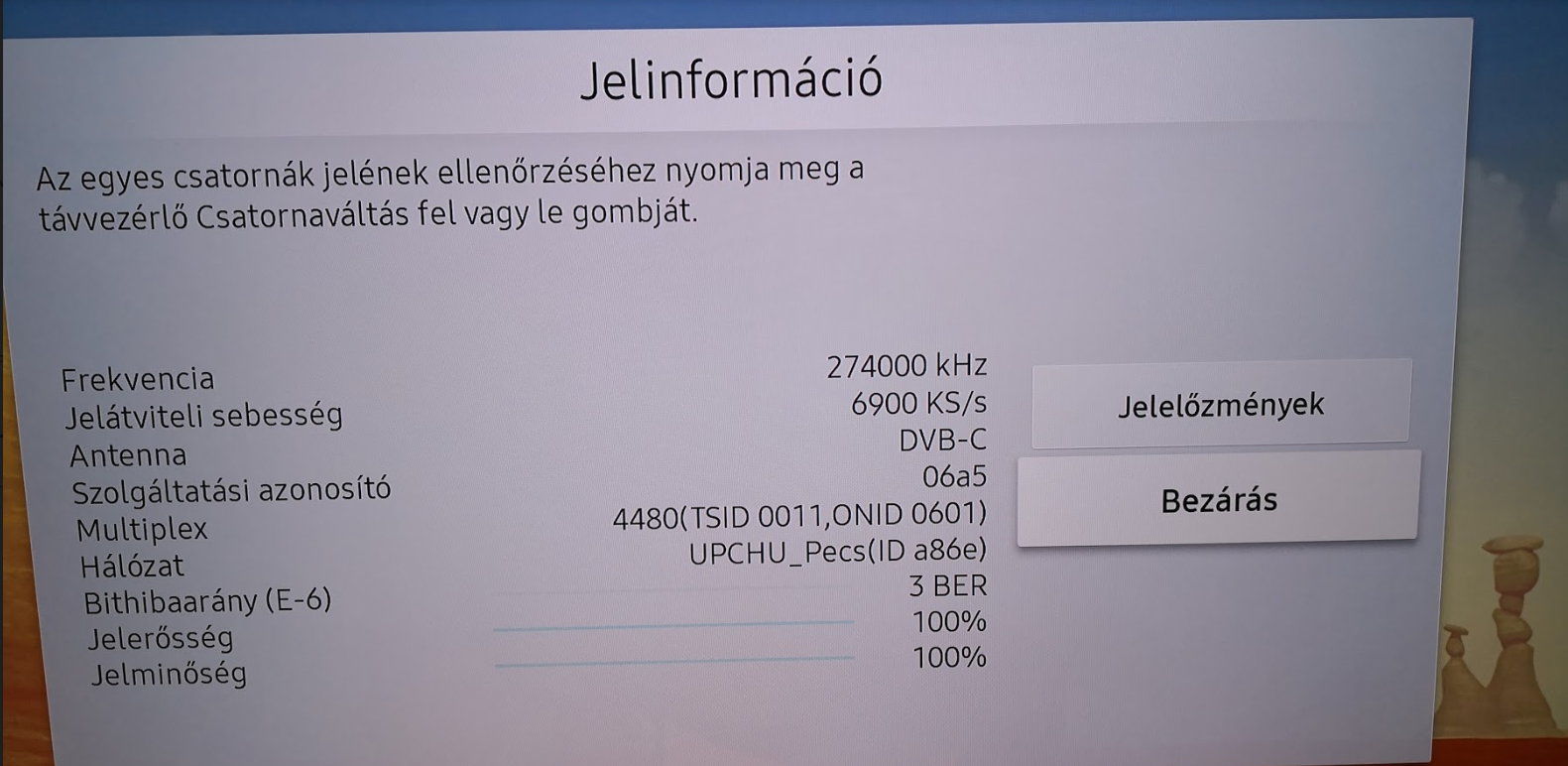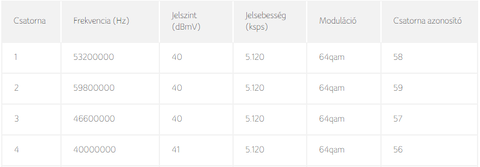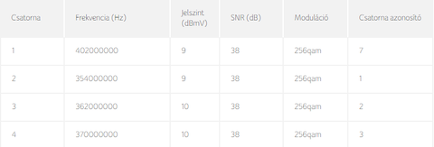 Az elosztó nem változott, egy tv kikerült, viszont ezek a kábelek most egyenesen be vannak dugva (nincsenek ott azok a csillapítók, vagy mi a nevük), nem tudom, hogy ez számít-e...A tv-ék pedig ezt mutatják...