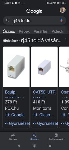 Most, amikor behúztam a 10G-nek a tömör kábelt, akkor egy 20 m-es előre szerelt darabot vettem, RJ45-tel a két végén. Ezt vágtam méretre, mert olcsóbb volt, mint csak kábelt venni. Amikor nem ment a falban a 10G, akkor a maradékra tettem egy csatlakozót (a 2000 forintos fogómmal), a lakáson keresztül összedugtam a két eszközt és azon meg megy a 10G. Ez nem azért van mert profin tudok nem odavaló csatlakozót nem megfelelő kábelre szerelni.