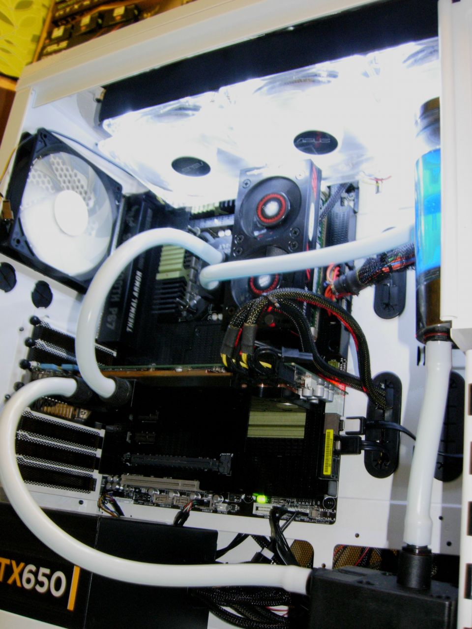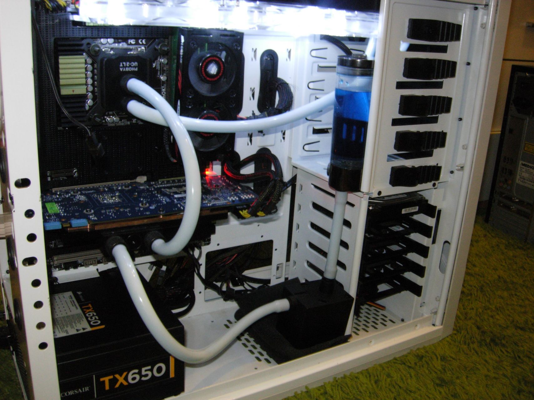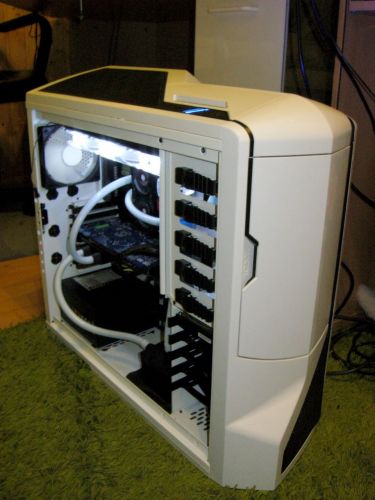 Mas... Azon filoztam, hogy eleg sokat cserelem a vga-t meg igy is, es nem lesz kedvem allandoan leengedni 2.2L folyadekot, majd feltolteni, legteleniteni. Jarhato ut lenne, ha elkulonithetove szerkesztenem a VGA reszt? Elore(felulre) berakok egy csapot, hatulra(alulra) meg vagy egy Y elosztot, ami egyben csap is, tehat vagy egyes vagy a kettes iranyba megy benne a folyadek, vagy mindkettobe. Nem tom ilyen letezik e, kerti locsoloknal van ilyen eloszto. Igy egyszeru lenne, mert csapot folul elzarnam, alul megvaltoztatnam a folyadek iranyat, kicsi kifolyna. Aztan folul lepattint, belefuj, es mar el is tunt a viz a VGA-bol. Visszafele pedig csak siman vissza kell kotni, csapokat elforditani, es mehet a buli. Azt kb. 4 perc lenne legteneliteni.