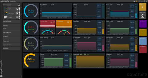 Bár csak egy cpu van hűtve. De a legmelegebb napokban sem volt 34C melegebb a víz, ilyen időben a 25C sem éri vel. Extra halk max cpu terhelésen is, de ennek ára van: van egy alphacool 420mm radiátor 45mm vastag(3*14cm venti), és van egy alphacool 240mm radiátor 60mm vastag. Persze ez még elbírna egy vga-t is így, korrekt hangon.