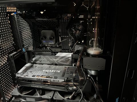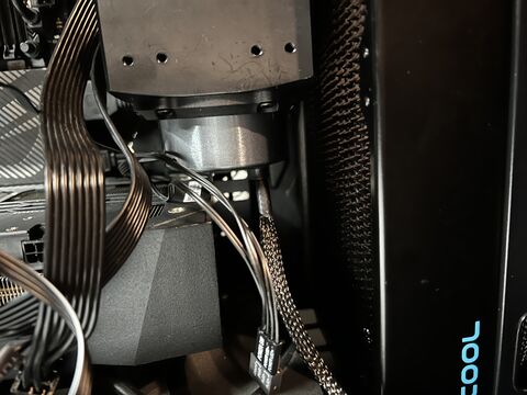 ...szerintem gondolkozz el azon, hogy elengeded a merev csövet, vagy találsz helyet tartálynak. Bármilyen kicsi elég. Ez pl. odafér egy venti helyre. Létezik ennél kisebb is, mondjuk Alphacool szerver hűtés alkatrészeinél lehet nézelődni. Ha puha csövet használsz, meg tudod csinálni azt is, hogy készítesz "házio AIO"-t, összerakod, légteleníted a gépházon kívül amennyire tudod, majd beszereled. -