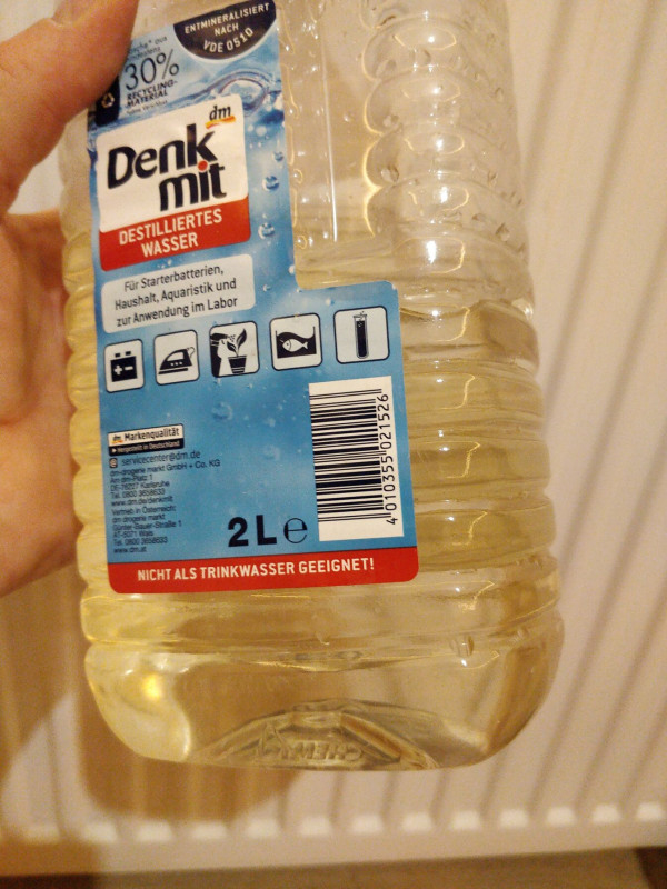 Vettel 1 Liter 20% ecetet, mennyi desztillált víz kell hozzá a mosáshoz.