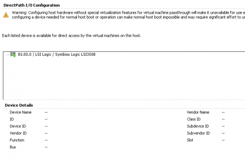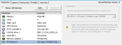 Passthrough-val oda van adva egy LSI kártya egy VM-nek.