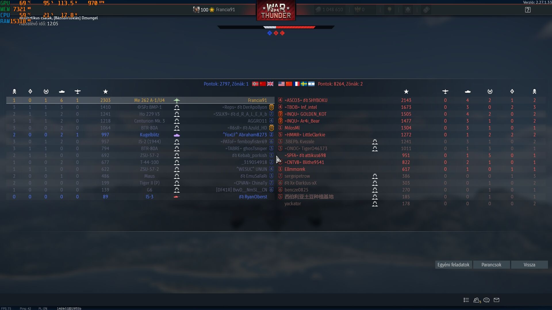 A német 7.3-as és 7.7-es presetemet pedig szétcseszte a Gaijin a BR emelésekkel csodálatosan, pedig már végre volt egy tök jó 7.3-as és 7.7-es német preset, amikkel lehetett RP-t és Liont is szedegetni.....
