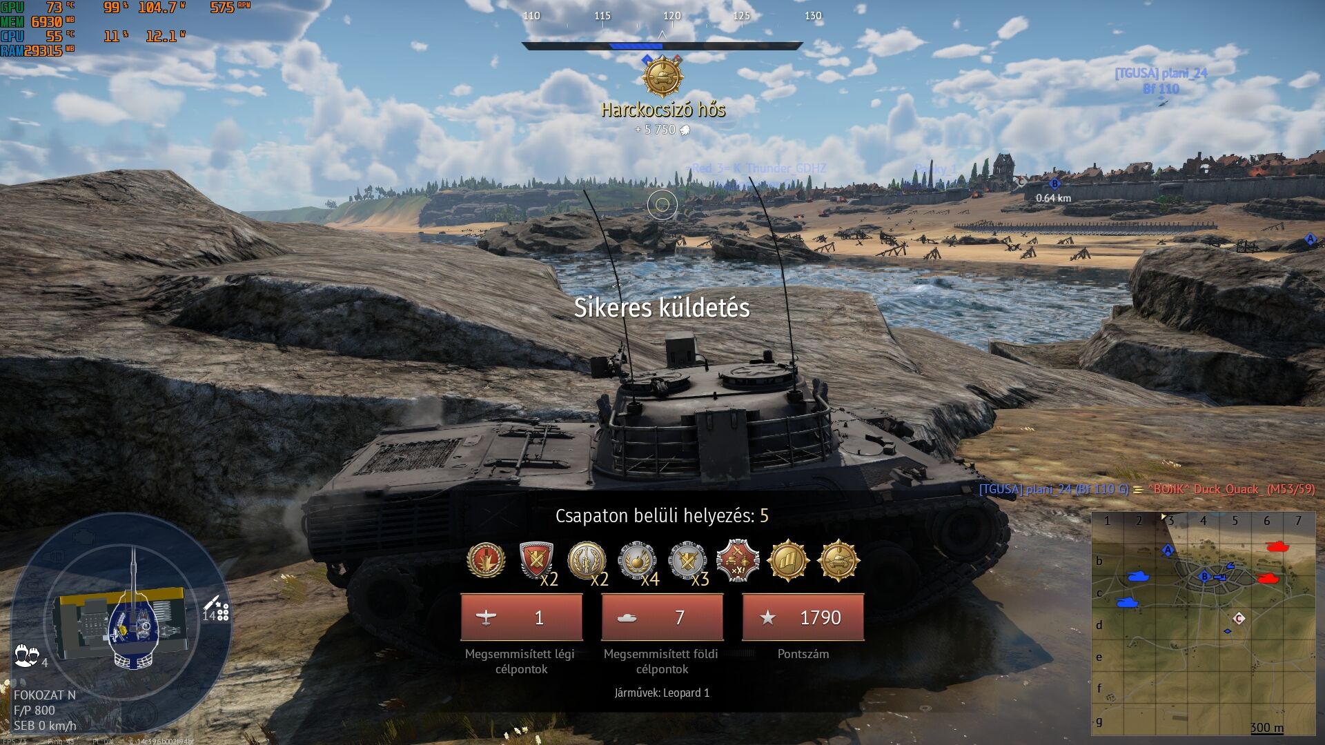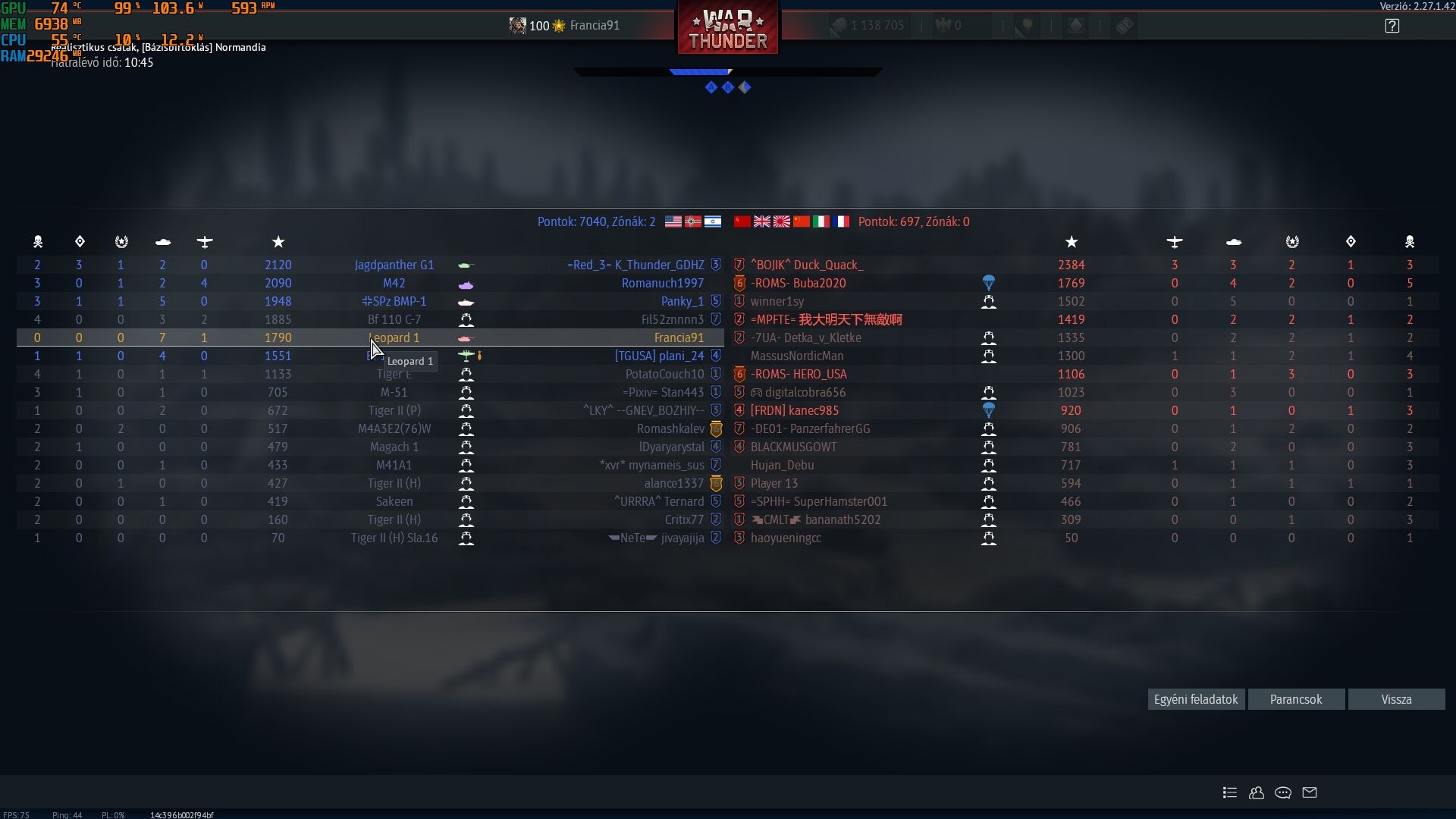 Pedig meglett végre a Gepard 1A2, mostmár az Ozelot és a sima Gepard mellett van tényleg jól használható légvédelmem, ami az Ozelot 4 km-e helyett 6 km-ről befogja a légi célpontot, és gépágyú is van, ha rakétához közel lenne az ellenfél... De mindhiába, ha az ellenséges csapat 2 perc után már a spawunkon van 5-6 db tankkal, és mind kínai neves, belőhetetlen prémium tankos.... Strv-103-ast rühellem a legjobban, szemből alig lehet kiszedni....