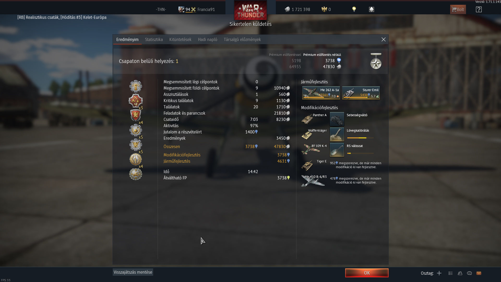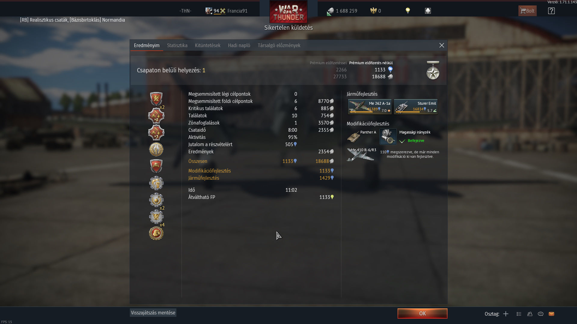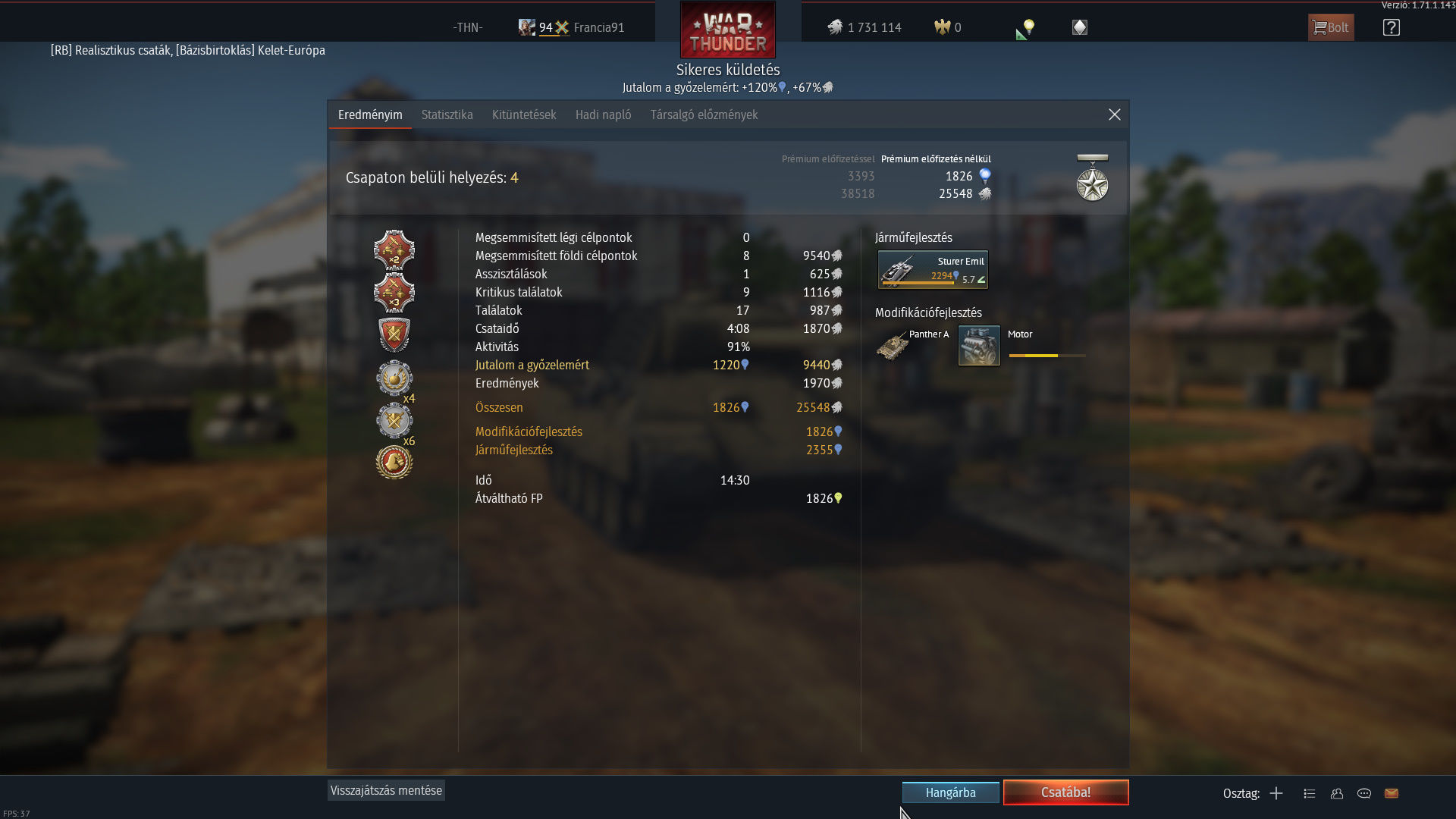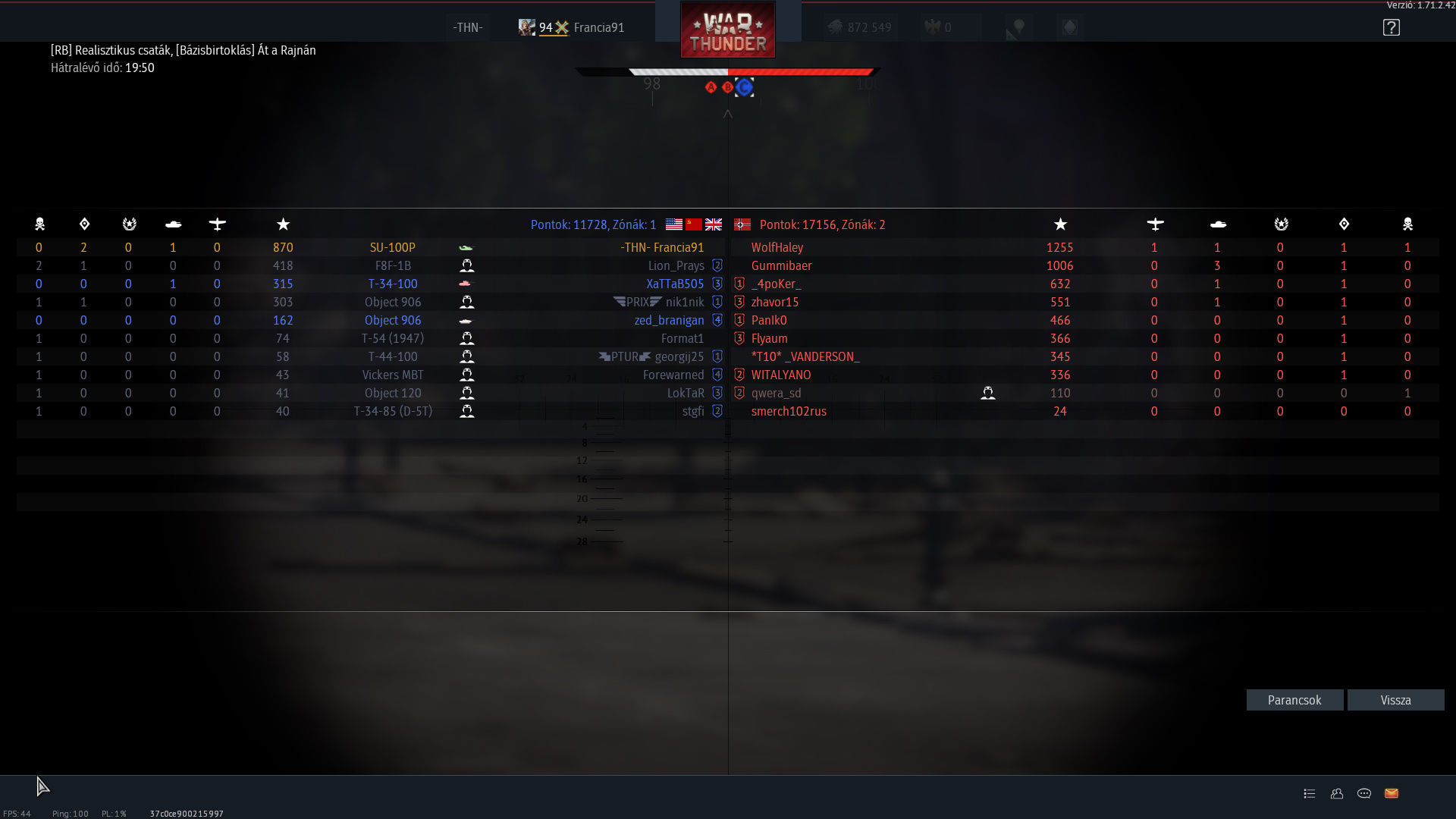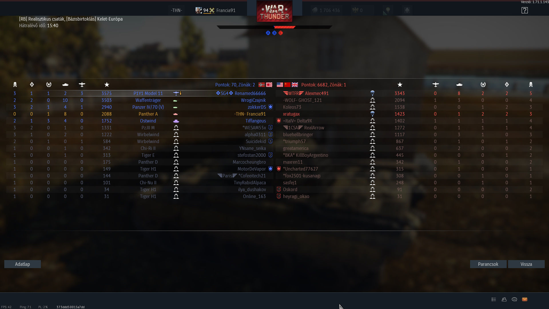 Nem lehet mondani hogy nem tettem meg mindent. USSR, USA, Brit túlerő ja meg minimum +10 év korszerűség az ellen javára. Nem azt mondom, lőttem ki Shermant, meg T34-et is, de ennyi killből 4-5, postwar szar ellen volt. Bevittem 1x Tiger II(P), 1x Panther A, és 2x Jagdpanther. Ennyire tellett.....