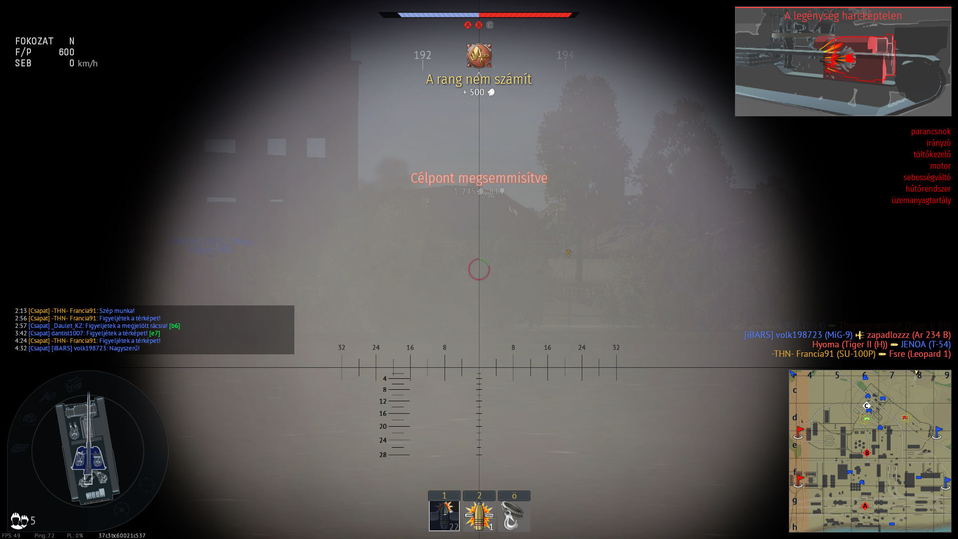 Sűrűn előfordul, hogy aphebc-vel beütöm, de csak a legénységet pucolja ki (csak a toronyból), modulok nem sérülnek. Sőt panther és tigris oldalába beleeresztem ugyanezt a lövedéket egyenesen a lőszereibe és csak besárgulnak... Persze akármelyik eltalál (mindegy, hogy hol) HULL BREAK!