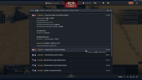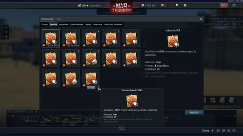 Egy példa, nekem még megvannak azok az 50x50%-os fokozók amiket valamelyik évben kaptunk Gaijintól, van 10 nap prémem, prémium járművem, meg beaktiválom a fokozókat, Pénteken már a Franciáknál a Vautour-al fogok repülni