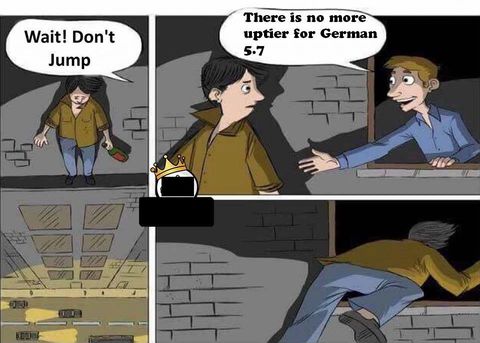 Német Air reál 4.7, csapatban 2 vadász, 10 bombázó, enemy-nél 10 spitfire meg 2 bombázó...de még ez hagyján, de hogy az ellenség hamarabb ott van a pontokon vadászgéppel amivel fel kell szállni mint én aki a levegőből kezd azért az már vicc... Mi a francot lehet a spitik ellen kezdeni? Társaim gépe egyik se olyan szinten van mint a spiti, simán lefordulja az összes gépet, hogy lehet így sikeres az ember ha ezek a tetvek folyton levadásznak mindenkit???