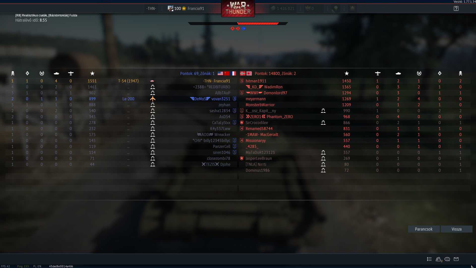 Szerintem RB-ben egy leo1 ezerszer jobban használható tank pl., és "csak" 7,3. Minimum pariban vannak a t-54-ek a leo-val, de a páncélt leszámítva (ami szerintem semmit nem jelent már) egy leo mindenben jobb. Én nekem az a tapasztalatom magasabb br-ben, hogy az nyer aki gyorsabb, mobilisabb, gyorsabban tölt, meg persze aki hamarabb észreveszi a másikat. De engem rendre fronton belőnek simán a leok, sokszor egylövéseznek (van hogy lepattan, de akár milyen hihetetlen én is sűrűn pattanok ám leo-ról). Én továbbra is azt mondom hogy nagyon nem indokolt a 7,7, sokkal modernebb tankok vannak már ebben a br-ben.