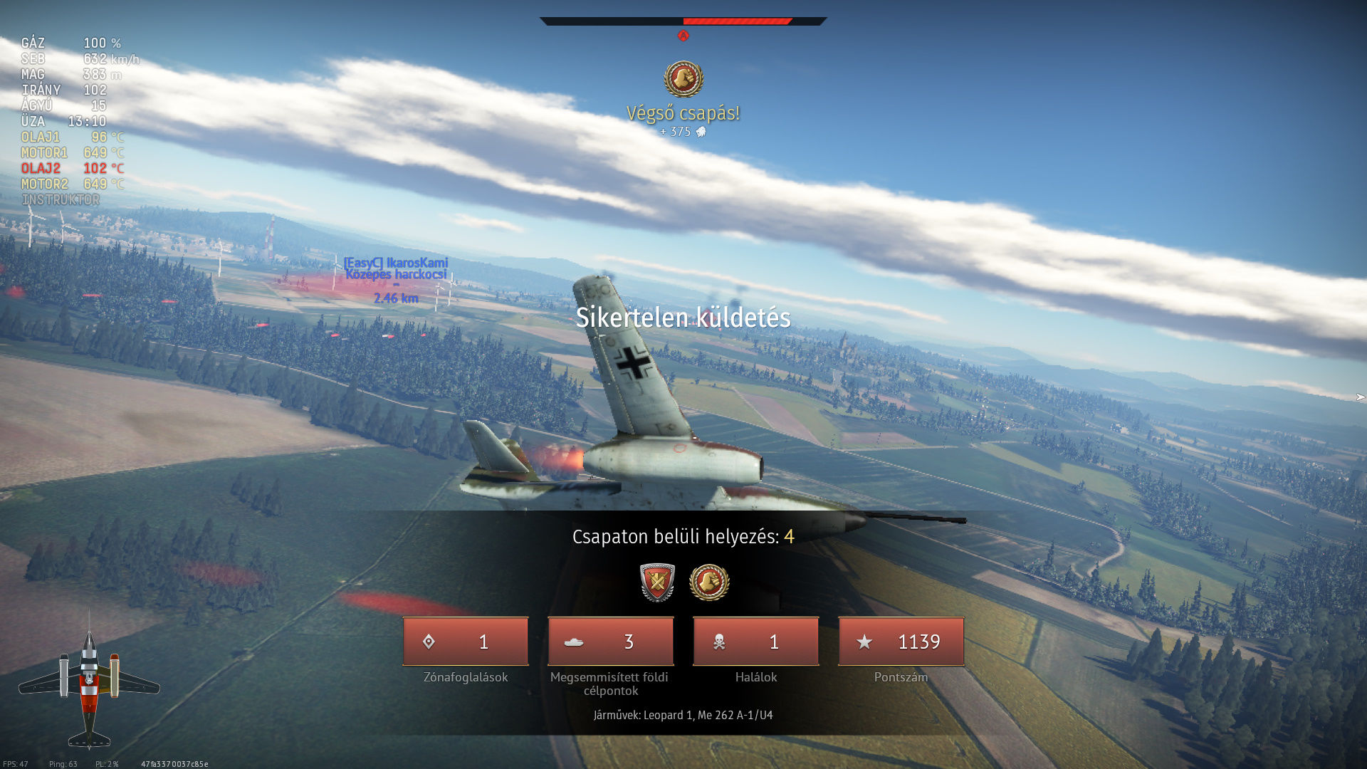 KPz-70 - indulás a jobb oldali pontról. Még a falut sem értem el, a tó másik oldaláról kilőttek.Pörgetés.