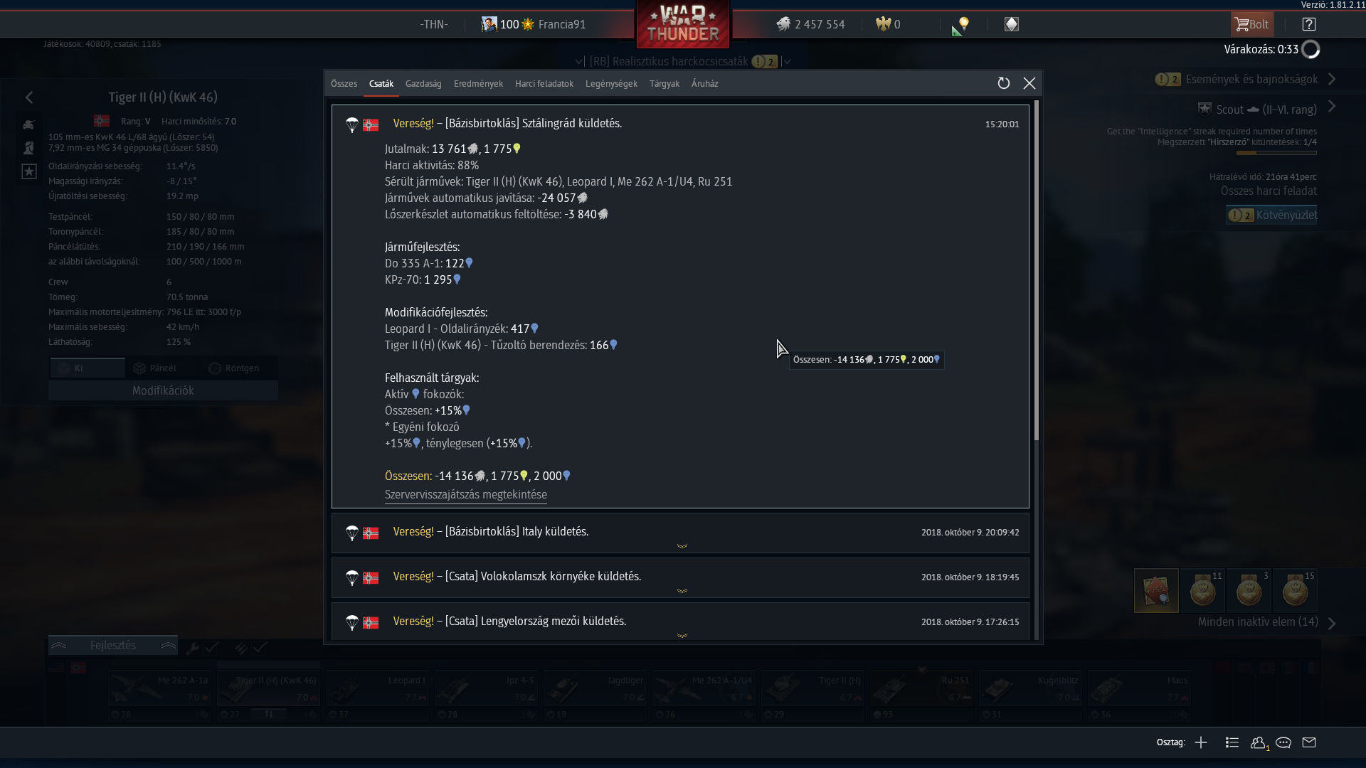 Egyszerűen hihetetlen, hogy a német 7.7 tank mennyire szét van b@szva Reálban.... Konkrétan ma 20-ból 20 meccs arról szólt, hogy az IS-7-esek és Object 120-asok 4 perc alatt kivégezték a csapatot.... Az összes meccs.... A Leo 1 alaplőszerével meg egy retkes T-54-est sem tudok kiszedni, miközben a Tiger II(H)-val lazán pukkantom őket.... Totál esélytelen az egész...