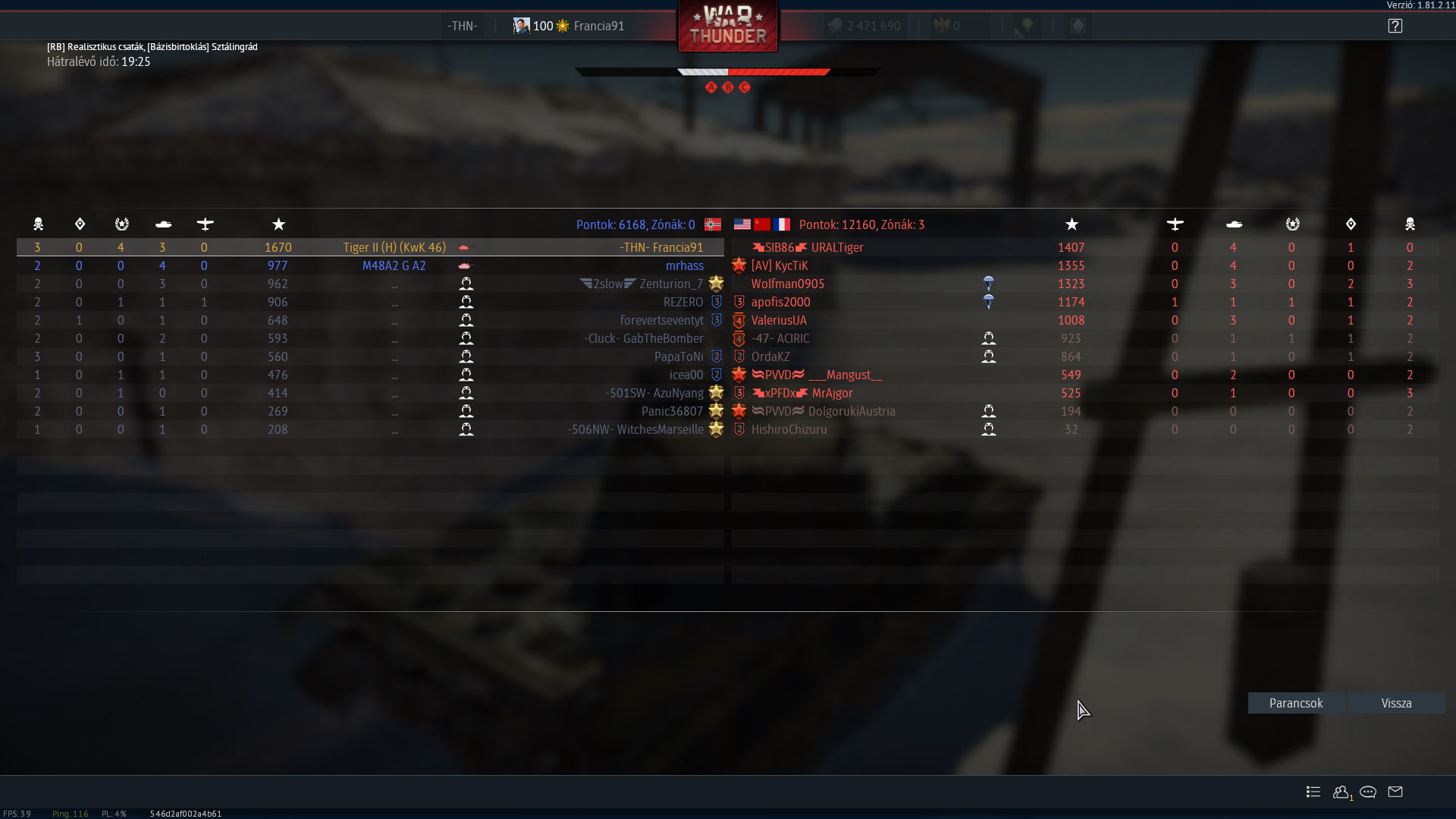 Eddig a KpZ-70-es fejlesztése miatt 7.7 németeztem, az egész dolog halott, 20-ból 19 mecsen ledarálnak 5 perc leforgása alatt.... Na ez meguntam, átmentem szovjet 7.7-be tankozni, na ott lehet pénzt keresni és normális meccseket menni... Érdekes...