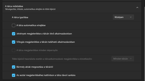 Settings | Personalization | Taskbar | Taskbar behaviors alatt ott a kapcsoló: