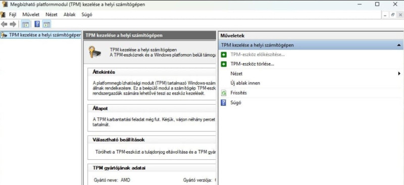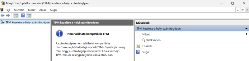Win nem lett újrarakva. Most arra lettem figyelmes, hogy nem megy a TPM.